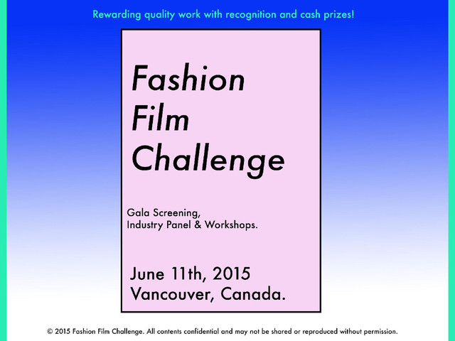 March 2015 Press Kit + Sponsor Benefits for Fashion Film Challenge | June 2015. Vancouver, Canada.