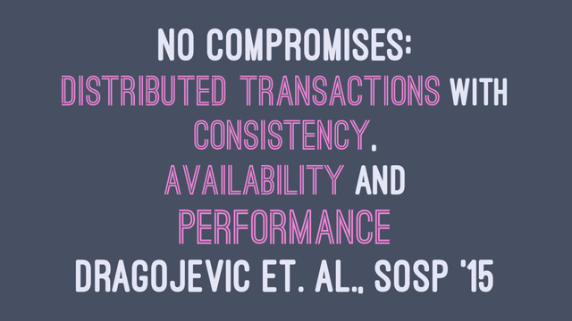 Henry Robinson from Cloudera will present the paper "No compromises: distributed transactions with consistency, availability, and performance" (http://sigops.org/sosp/sosp15/current/2015-Monterey/printable/227-dragojevic.pdf )