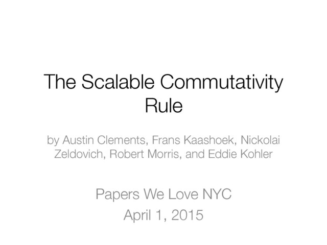The authors apply this idea to Linux, and create a new operating system by using the rule, sv6. Their paper also comes with software, COMMUTER, which can help developers evaluate their interfaces to find opportunities for scaling.