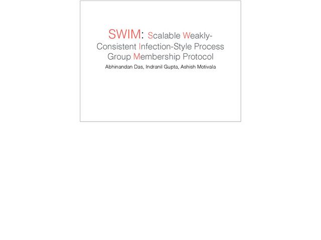 Armon Dadgar from HashiCorp presents the SWIM: Scalable Weakly-consistent Infection-style Process Group Membership Protocol paper by Abhinandan Das, Indranil Gupta, and Ashish Motivala.