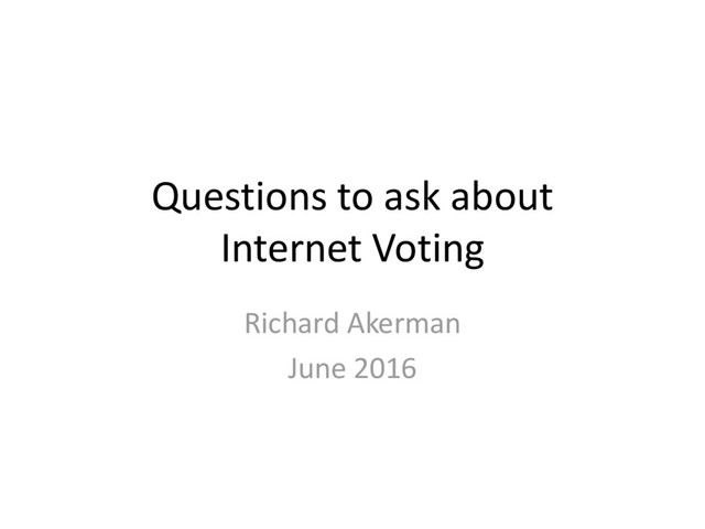 (21 minutes) Reports • BC Independent Panel on Internet Voting • Assessment of Electronic Voting Options – Australian Parliament • Independent Report on E-voting in Estonia 22