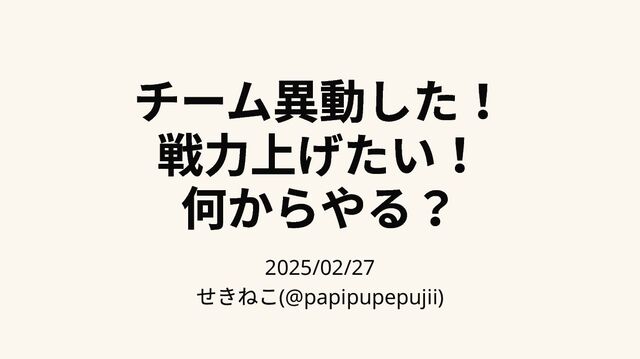 チーム異動した! 戦力上げたい! 何からやる? 2025/02/27 せきねこ(@papipupepujii)