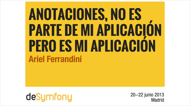 agregados a un texto. Java 1.5, especificación JSR-175 en 2002 y aprobadas en septiembre de 2004. Las anotaciones no afectan directamente a la semántica del programa, pero afectan a la forma en que los programas son tratados por herramientas y bibliotecas, que a su vez pueden afectar a la semántica del programa en ejecución. Las anotaciones se pueden leer en clases mediante reflexión en tiempo de ejecución. #deSymfony @aferrandini