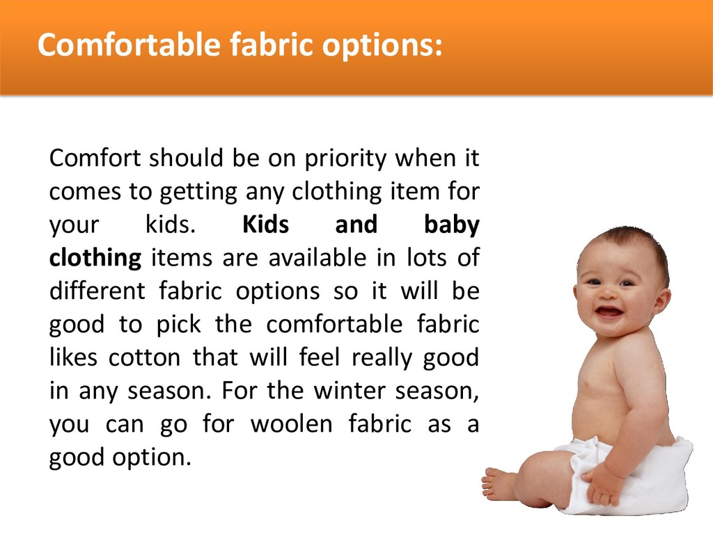 Comfort should be on priority when it comes to getting any clothing item for your kids. Kids and baby clothing items are available in lots of different fabric options so it will be good to pick the comfortable fabric likes cotton that will feel really good in any season. https://medium.com/@paradiseclothing/a-complete-guide-to-pick-the-right-clothing-items-for-your-kids-cc06ec342970
