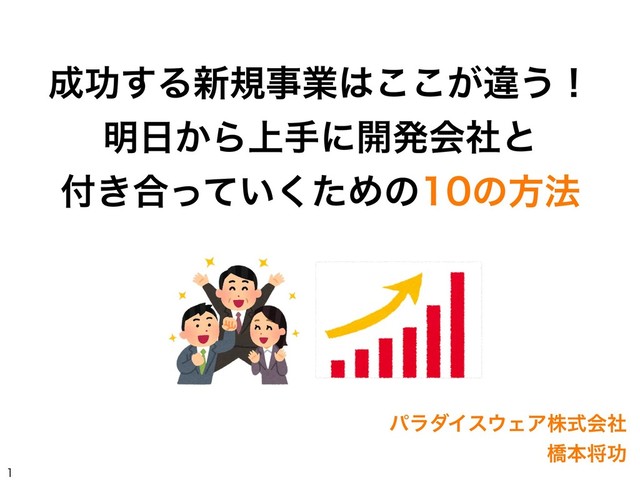 新規事業で開発会社と協力してプロジェクトを成功させる際に、発注者としてどういうことを知っておくのが大事なのかをまとめた資料です。