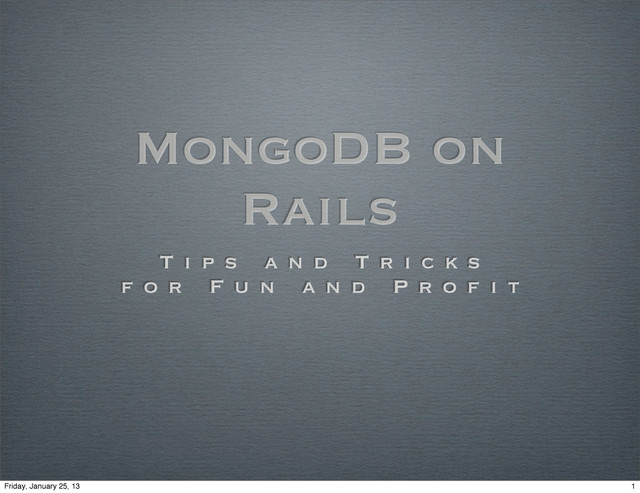 T r i c k s f o r F u n a n d P r o f i t 1 Friday, January 25, 13