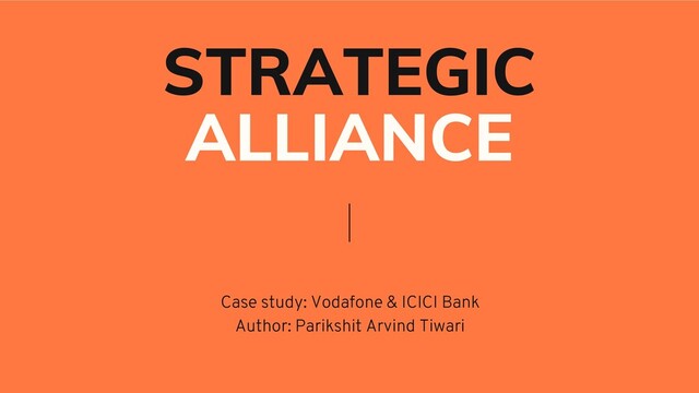 The presentation is on the topic of Strategic Alliance and involves all of it's theoretical concept as well as case study of the alliance between Vodafone and Paytm in India. I choose a theme with vibrant colours because it helps in grasping the audiences attention as well keeping their focus on the topic at hand.