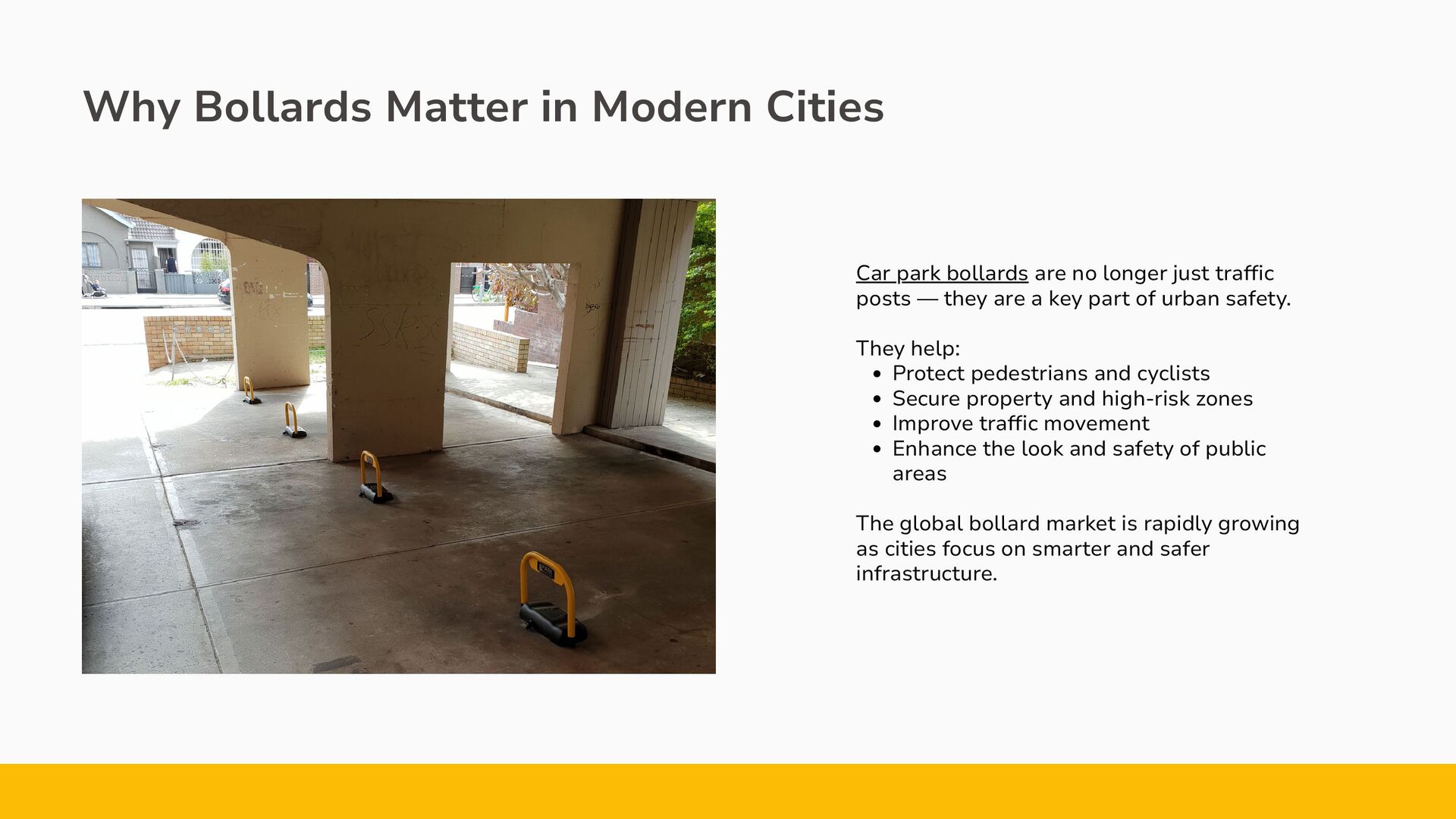 Bollards are essential for stopping vehicles from entering protected zones, especially with the rise in vehicle ramming attacks. Cities now depend on strong and smart bollards to secure walkways, buildings, and public areas. As global demand grows, automated and retractable designs offer safer control. Park Master supports this need with car park bollards featuring Bluetooth, remote operation, and manual access for reliable protection.