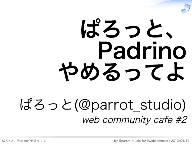 ぱろっと、Padrinoやめるってよ by�@parrot̲studio�for�#webcommcafe�2013/04/14 ぱろっと、 Padrino やめるってよ ぱろっと(@parrot̲studio) web�community�cafe�#2