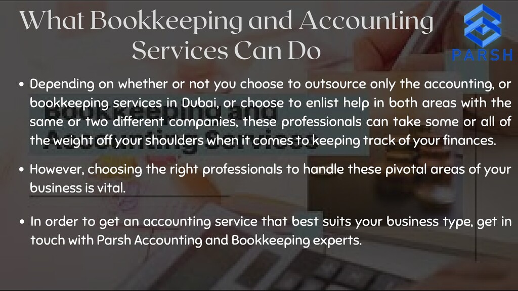 or not you choose to outsource only the accounting, or bookkeeping services in Dubai, or choose to enlist help in both areas with the same or two different companies, these professionals can take some or all of the weight off your shoulders when it comes to keeping track of your finances. In order to get an accounting service that best suits your business type, get in touch with Parsh Accounting and Bookkeeping experts. However, choosing the right professionals to handle these pivotal areas of your business is vital.