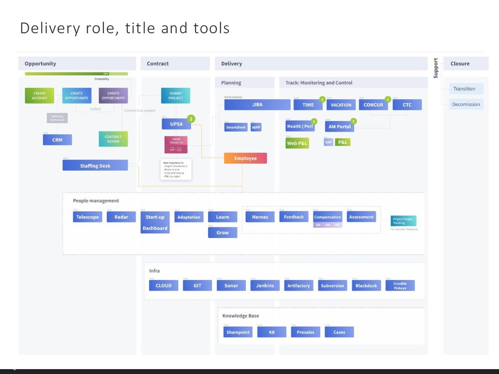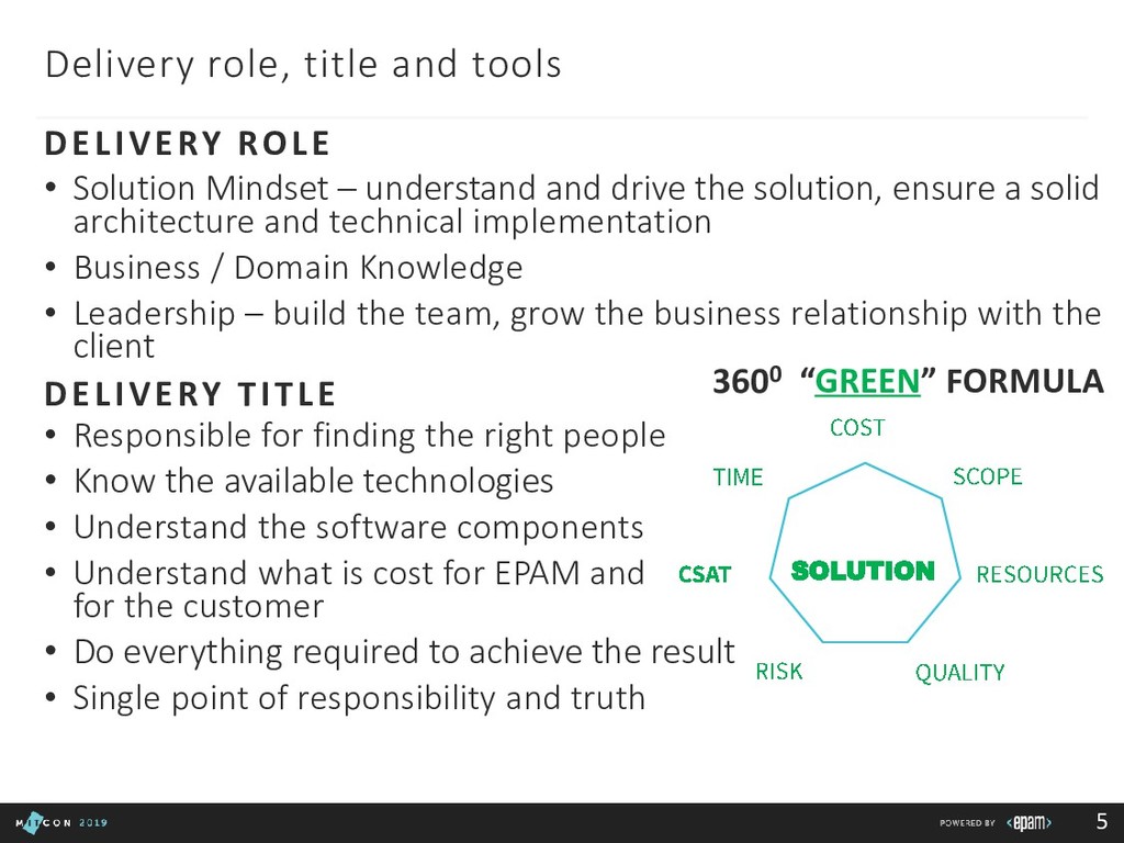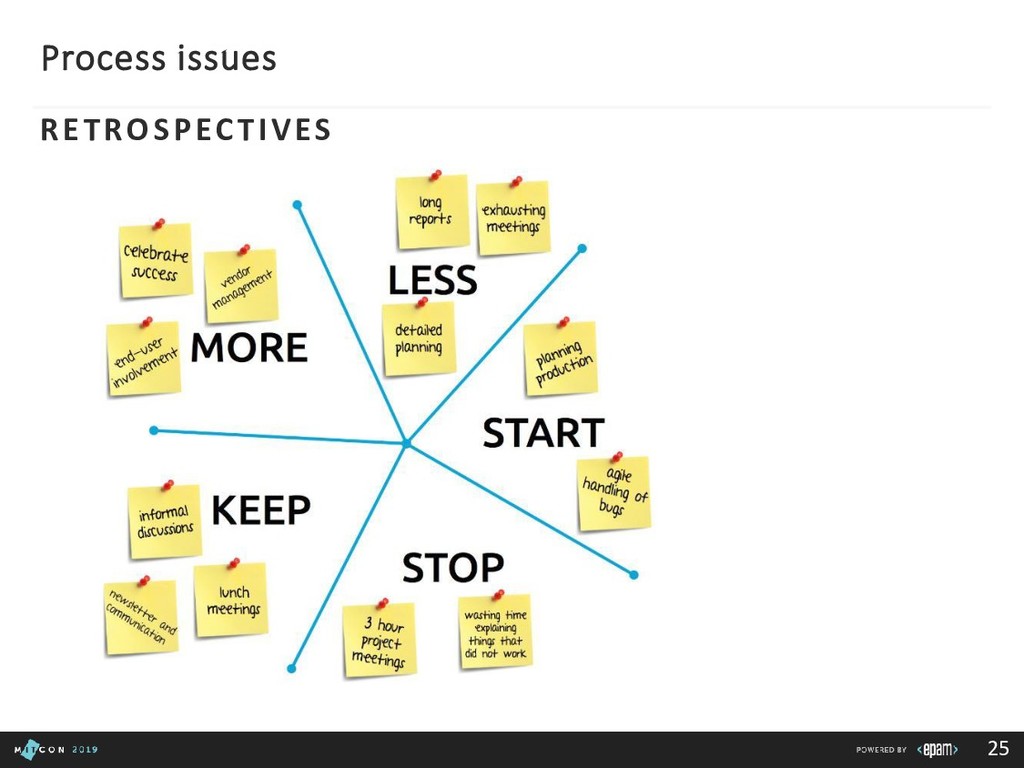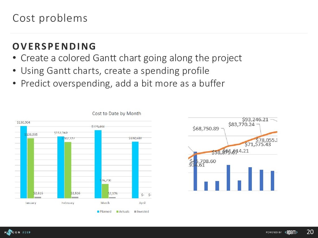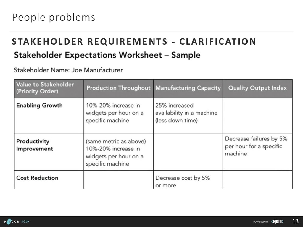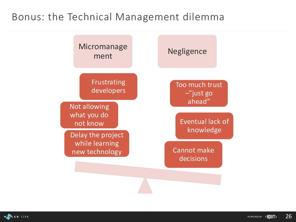 Team: clarify roles, progress, blockers Customer: report in time, be transparent Boss: communicate statuses and risks, use facts to say No 3rd party/suppliers: include them in the common plan, get written agreements, use Gantt charts to show the impact of different groups