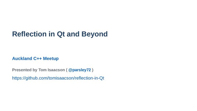 I've recently found we can take advantage of some of Qt's newer features to achieve a basic level of reflection which I'll present. But what is reflection and what has been proposed for C++?