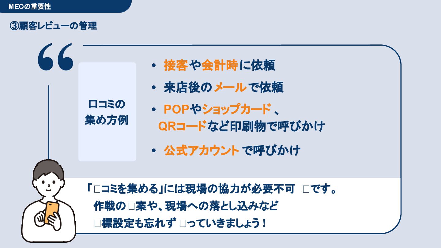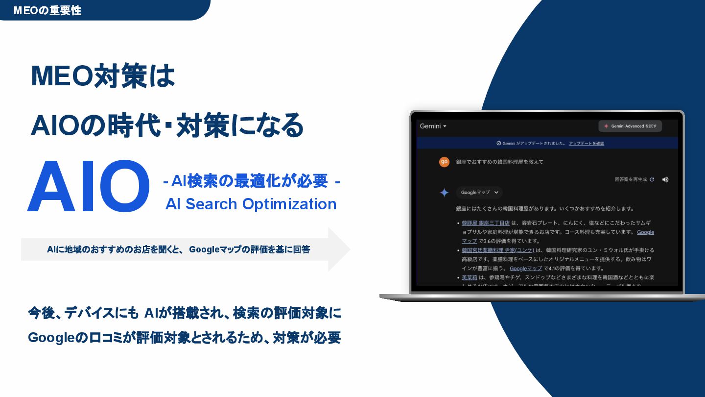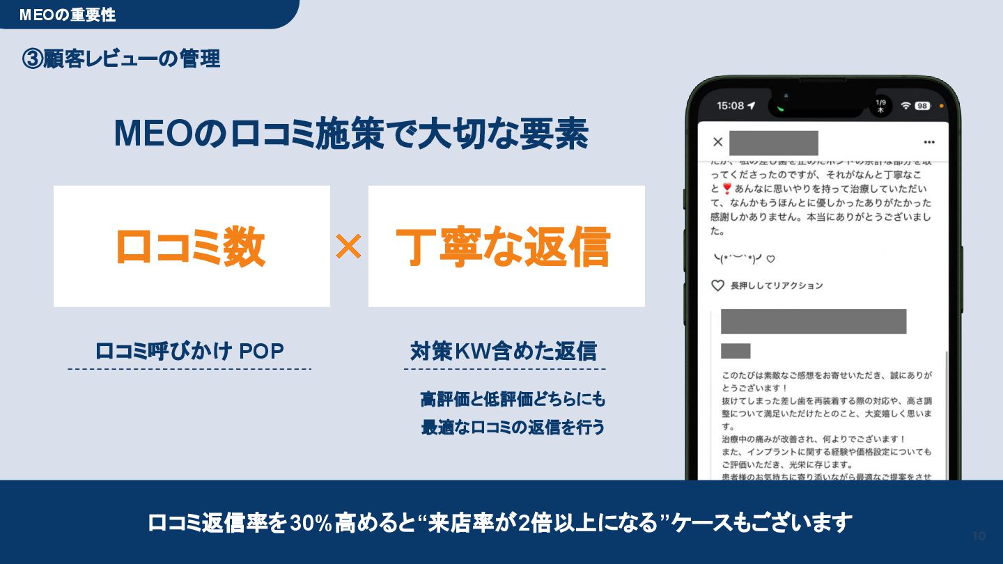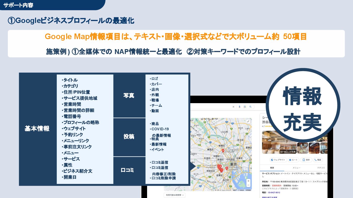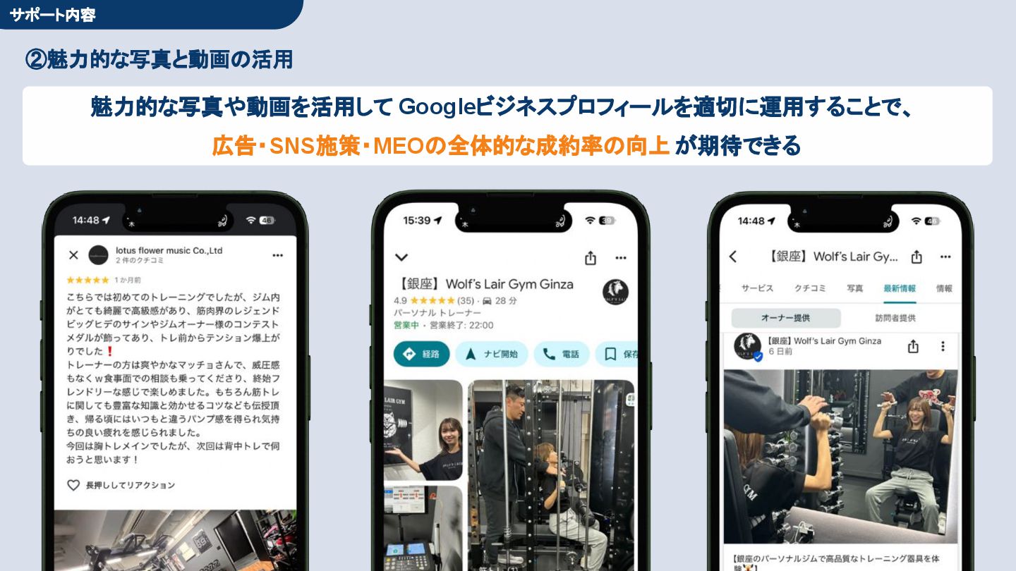 50,000円/月 総合コンサルプラン \ 全て自分で設定できる! / 10,000円/月 システム利用プラン AI口コミアンケート機能 口コミ返信機能 クーポン抽選機能 LINE・メール取得・一括配信 Googleマップ順位測定機能 レポート機能(インプレッショ ン、クリック数など) 初期設定(導入部分) ・GBP連携 ・アンケート作成(クーポン) ・POP作成 ・LINE連携 ・キーワード登録 最新投稿 ・週2(素材は店舗設定/ 写真提供なしはオプション) 口コミ返信:週3 ・1日最大で1店舗30件イメージ ・星のみ口コミは 専用プロンプト設定するが他はしない ・星1・星2口コミは必ず店舗確認を挟む ▲ 基本機能を全て利用可能 ▲ Googleビジネスプロフィール全体の改善 地図の健康診断オール Aへの改善運用 集客対策キーワード改善 集客アップ改善アドバイス Zoomによるコンサルミーティング 口コミ365システム全機能 口コミ365初期設定代行 (アンケート設定、クーポン設定、 LINE連携など) 最新情報投稿(週2回) 口コミ促進POP制作送付 口コミ返信(週3回) ※各改善においてはご相談の上、別途見積りでとさせて頂きます。