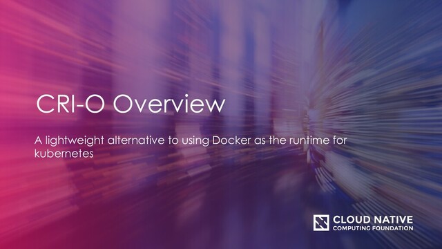 • An implementation of the Kubernetes CRI (Container Runtime Interface) to enable using OCI (Open Container Initiative) compatible runtimes • It allows Kubernetes to use any OCI-compliant runtime as the container runtime for running pods • Today it supports runc and Kata Containers as the container runtimes but any OCI-conformant runtime can be plugged in principle. • It is a lightweight alternative to using Docker, Moby or rkt as the runtime for Kubernetes.