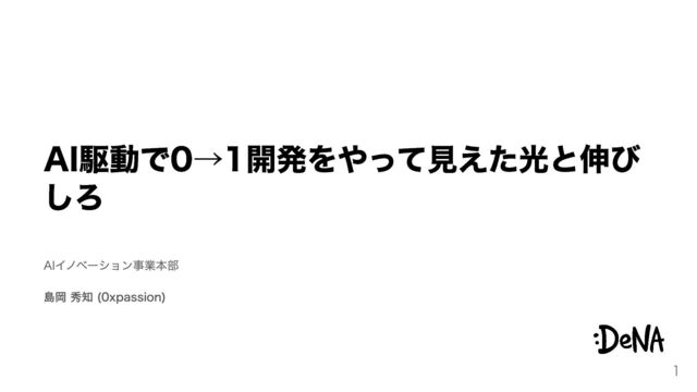 AI駆動で0→1開発をやって見えた光と伸び しろ AIイノベーション事業本部 島岡 秀知 (0xpassion) 1