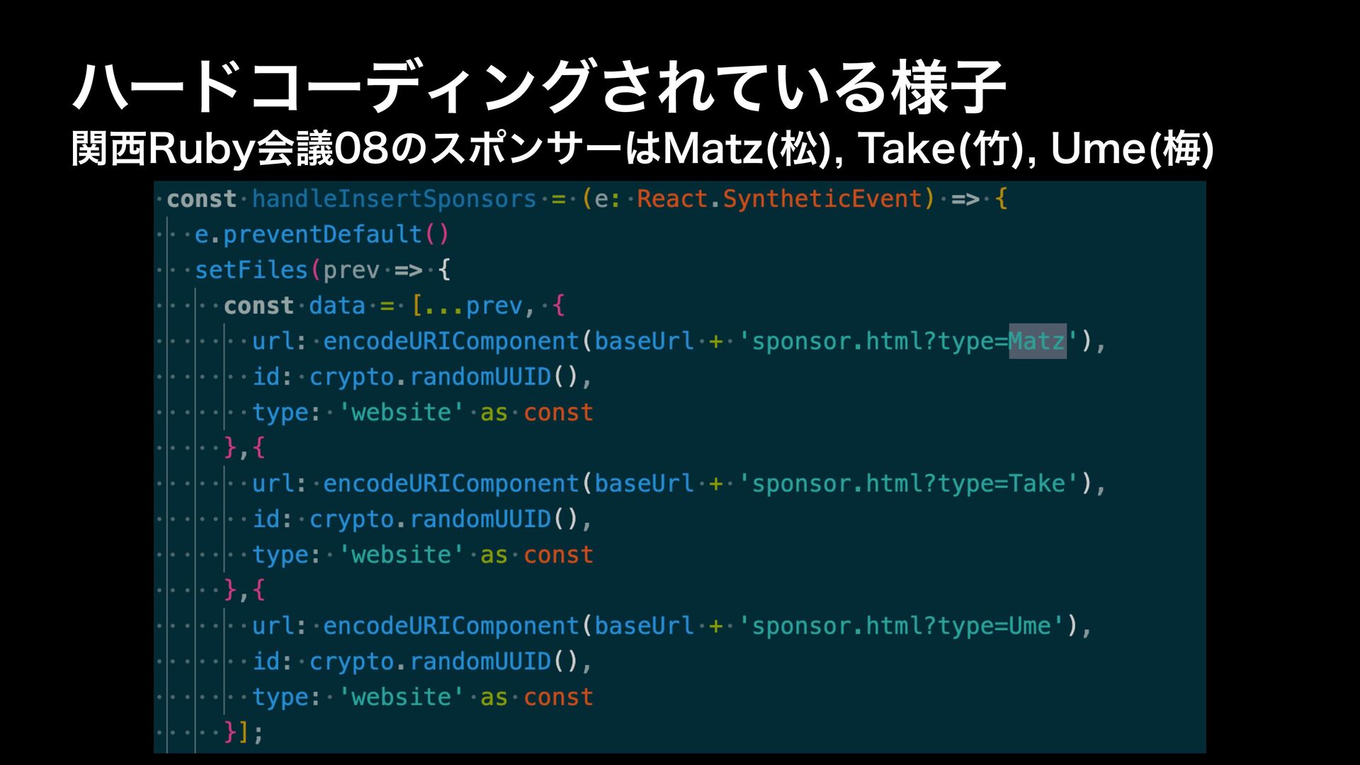 ؔ3VCZձٞͳͲͰ׆༂ w ৭ΜͳΠϕϯτͰྲྀ༻͍ͯͯ͠ɺϊʔΨʔυ࡞ઓͳͷͰɺDPNNJUϩάί ʔυ্ͷ֤ॴʹ֤Πϕϯτͷॾʑ͕ϋʔυίʔσΟϯά͞Ε͍ͯΔ