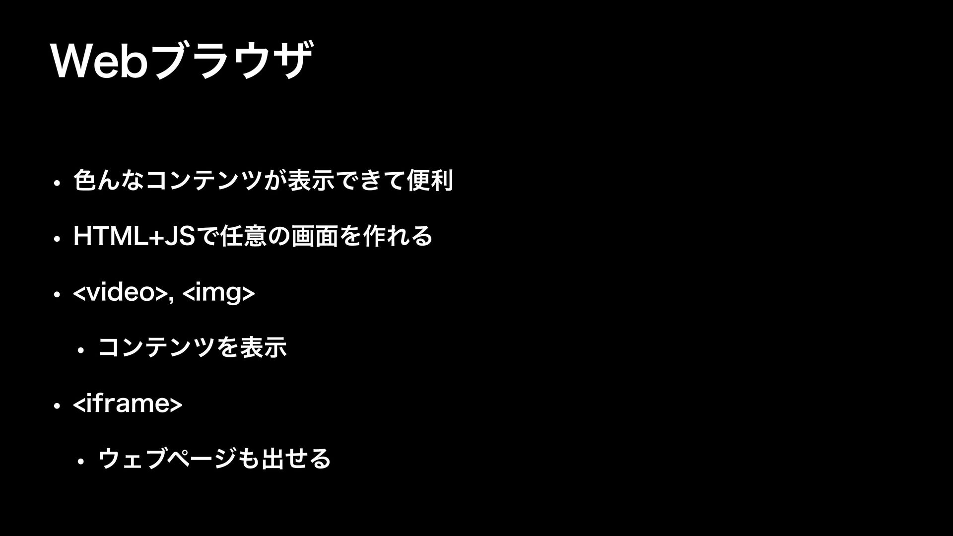 8FCϒϥβ w ৭Μͳίϯςϯπ͕දࣔͰ͖ͯศར w )5.- +4Ͱҙͷը໘Λ࡞ΕΔ w WJEFP JNH w