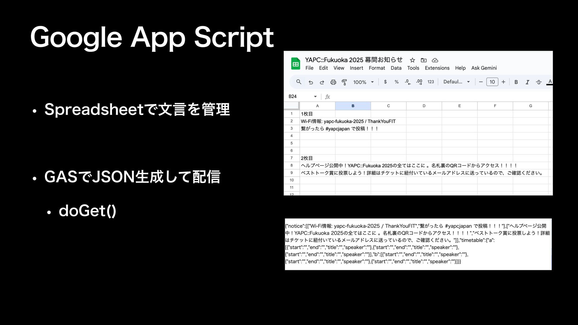 (PPHMF"QQ4DSJQU w 4QSFBETIFFUͰจݴΛཧ w ("4Ͱ+40/ੜͯ͠৴ w EP(FU