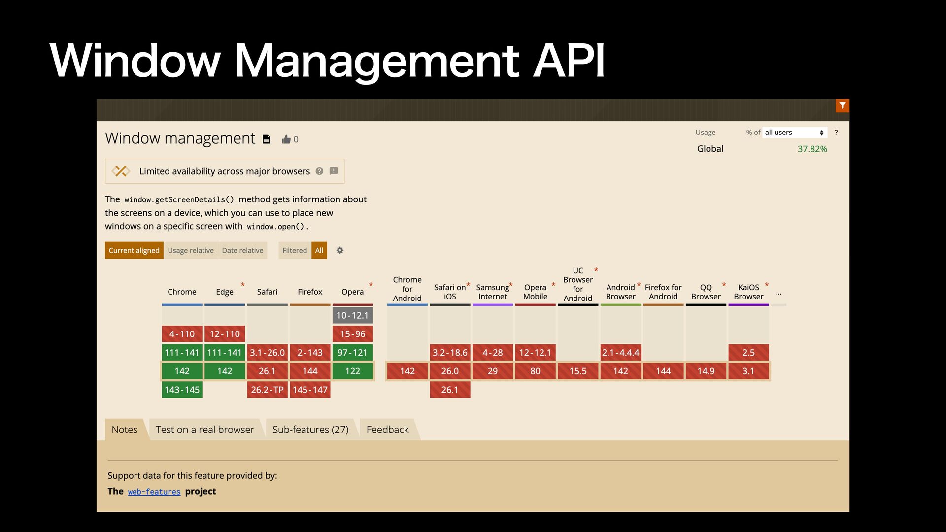 8JOEPX.BOBHFNFOU"1* w ֤εΫϦʔϯͷใΛऔಘͨ͠ΓɺXJOEPXΛૢ࡞ͨ͠Γग़དྷΔ"1* w $ISPNFͷΈʹೖ͍ͬͯΔঢ়گ w SFRVFTU'VMMTDSFFO ʹTDSFFOΦϓγϣϯ͕ར༻Մೳʹ w BXBJUEPDVNFOUCPEZSFRVFTU'VMMTDSFFO