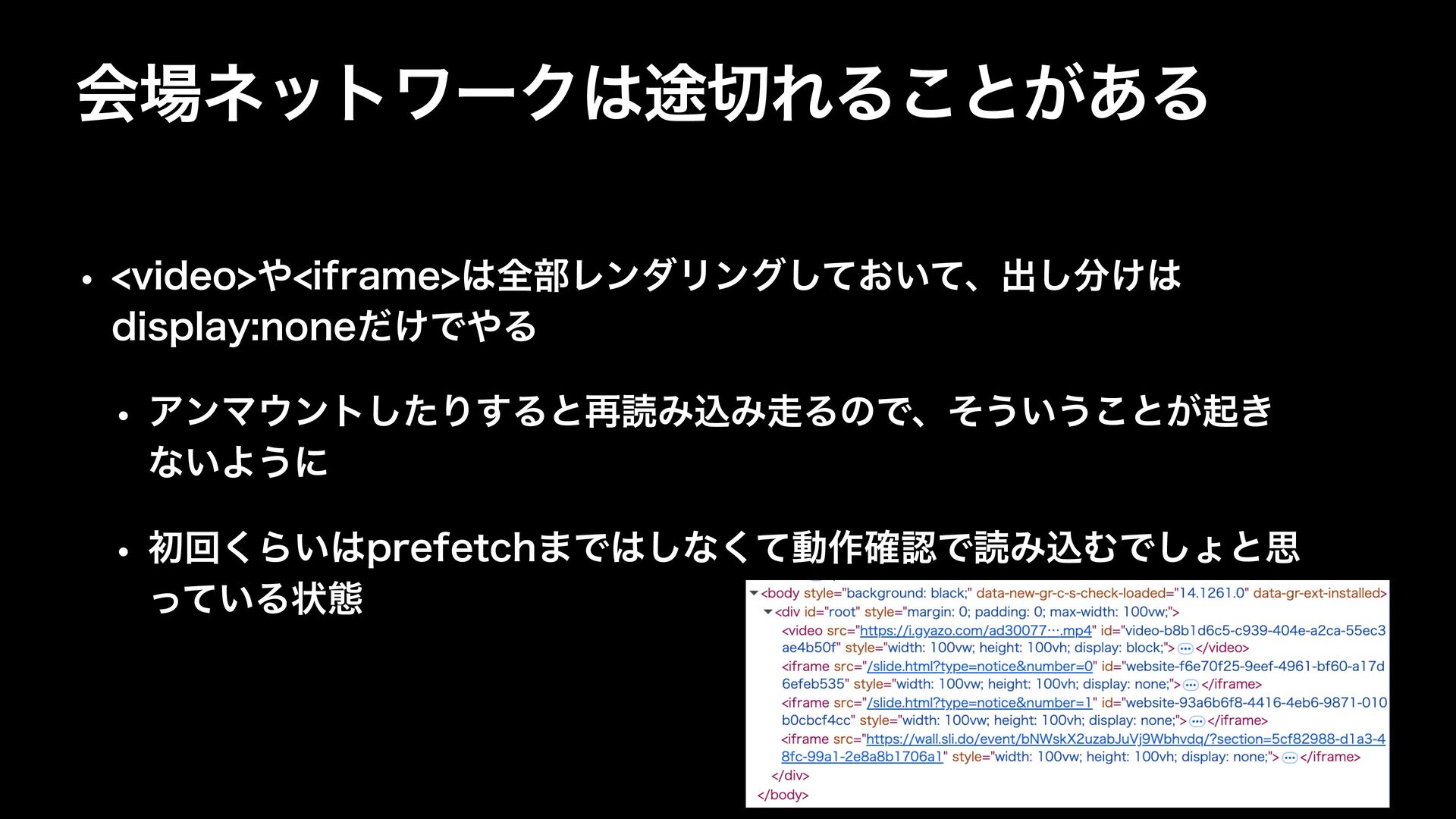 ձωοτϫʔΫ్ΕΔ͜ͱ͕͋Δ w WJEFPJGSBNFશ෦ϨϯμϦϯά͓͍ͯͯ͠ɺग़͚͠ EJTQMBZOPOF͚ͩͰΔ w ΞϯϚϯτͨ͠Γ͢Δͱ࠶ಡΈࠐΈΔͷͰɺͦ͏͍͏͜ͱ͕ى͖ ͳ͍Α͏ʹ w ॳճ͘Β͍QSFGFUDI·Ͱ͠ͳͯ͘ಈ࡞֬ೝͰಡΈࠐΉͰ͠ΐͱࢥ ͍ͬͯΔঢ়ଶ