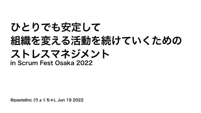 ひとりでも安定して 組織を変える活動を続けていくための ストレスマネジメント