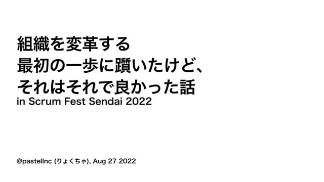 Scrum Fest Sendai 2022, オンライントラック, 14:25 - 14:45 https://confengine.com/conferences/scrum-fest-sendai-2022/proposal/17078