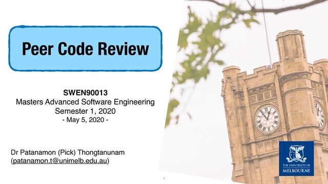 5, 2020 - Peer Code Review Dr Patanamon (Pick) Thongtanunam ([email protected]) 1