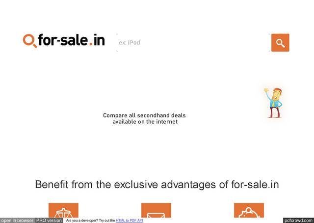 Try out the HTML to PDF API Post a free ad Benefit from the exclusive advantages of for-sale.in MY FOR-SALE POST AN AD ex: iPod Sell it quicker? Buy it cheaper? It’s free on for-sale.in! Compare all secondhand deals available on the internet