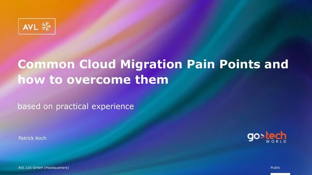 Public Conclusion Decide for a Cloud Migration Strategy Avoid to start with a too complex implementation – start lightweight Don‘t do manual provisioning – use Infrastructure as Code approach Be aware of the costs, monitor them
