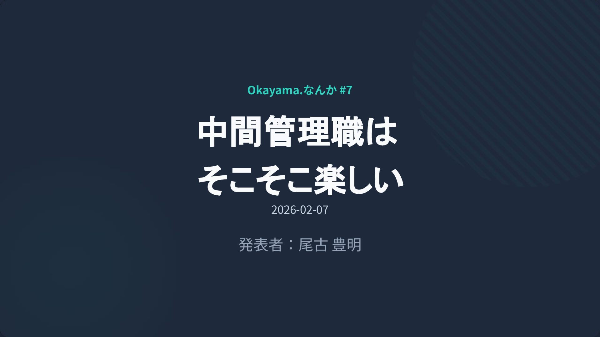 Okayama.なんか #7 中間管理職は そこそこ楽しい 2026-02-07 発表者:尾古 豊明