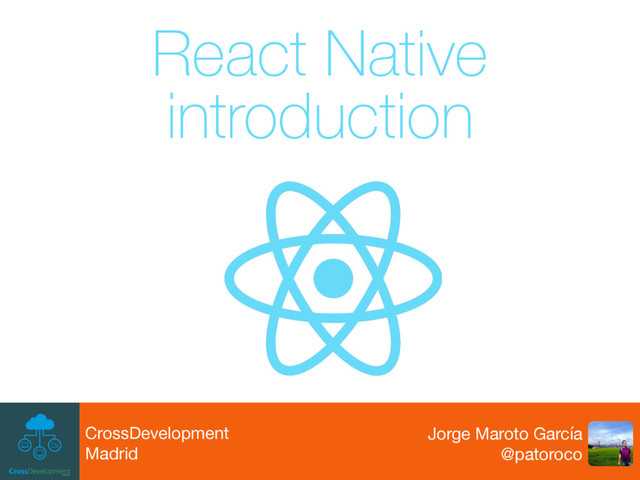 autolayout) either XML layouts ‣ CSS + flexbox as styling language const styles = StyleSheet.create({ container: { flex: 1, justifyContent: 'center', alignItems: 'center', backgroundColor: '#F5FCFF', }, welcome: { fontSize: 20, textAlign: 'center', margin: 10, }, instructions: { textAlign: 'center', color: '#333333', marginBottom: 5, }, }); class HelloWorld extends Component { render() { return ( <View style={styles.container}> <Text style={styles.welcome}> Welcome to React Native! </Text> <Text style={styles.instructions}> To get started, edit index.ios.js </Text> <Text style={styles.instructions}> Press Cmd+R to reload,{'\n'} Cmd+D or shake for dev menu </Text> </View> ); } }