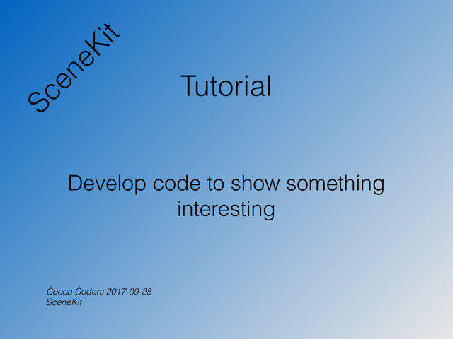 affect the world around me self.view.backgroundColor = UIColor.cyan // 1 create the view let minimalSceneKitView = self.view as! SCNView // 2 create the scene and attach it to the view let minimalSceneKitScene = SCNScene() minimalSceneKitView.scene = minimalSceneKitScene /// 3 create an object and attach the object to the scene via a node let sphereOne = SCNSphere(radius: 8.0) let sphereOneMaterial = SCNMaterial() sphereOneMaterial.diffuse.contents = UIColor.green sphereOne.materials = [sphereOneMaterial] let sphereOneNode = SCNNode(geometry: sphereOne) minimalSceneKitScene.rootNode.addChildNode(sphereOneNode) SceneKit // 4 create a camera and attach the camera to the scene via a node let cameraOne = SCNCamera() let cameraOneNode = SCNNode() cameraOneNode.camera = cameraOne cameraOneNode.position = SCNVector3Make(0.0, 0.0, 30.0) minimalSceneKitScene.rootNode.addChildNode(cameraOneNode) // 5 create a light and attach the light to the scene via a node let lightOne = SCNLight() let lightOneNode = SCNNode() lightOneNode.light = lightOne lightOneNode.position = SCNVector3Make(-30.0, 30.0, 50.0) minimalSceneKitScene.rootNode.addChildNode(lightOneNode)