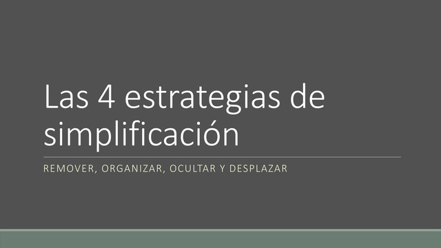una solución de bajo costo – cambiar el botón de un programa de un lado a otro es más ‘barato’ a nivel de desarrollo que tomar una decisión de reestructurar dicha pantalla – por lo que la gente lo prefiere más. Hay miles de opciones abiertas cuando se trata de organizar una interfaz, por ejemplo, tamaño, color, posición, jerarquía, formas, etcétera. Si se quiere organizar para simplificar, es importante enfatizar que una organización simple no llama la atención por sí sola, sino que hace que el usuario se enfoque más fácilmente en ello.