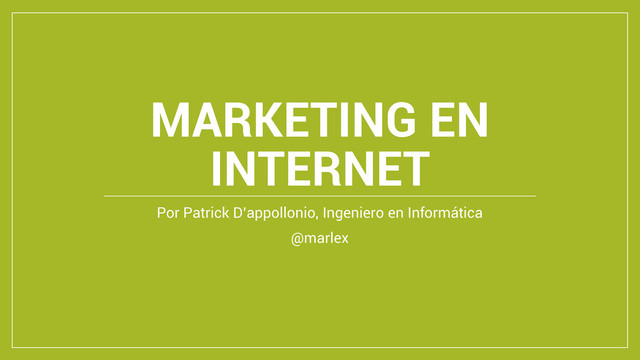 en Internet • Para que un negocio exista, “debe” estar en Google • Lo que se hace es optimizar el sitio para que Google “entienda” de qué se trata. • Para hacerlo, hay que conectar todo con todo. • No es un trabajo fácil, los efectos se notan recién al tercer o cuarto mes. • Se optimiza para una palabra o frase en particular, llamada “keyword”