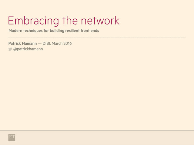 During this talk Patrick will share his experiences delivering high-performance websites to millions of users over the past 3 years at The Guardian and Financial Times. Which – most importantly – are resilient to the network.