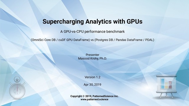 Title: Supercharging Analytics with GPUs: OmniSci/cuDF vs Postgres/Pandas/PDAL