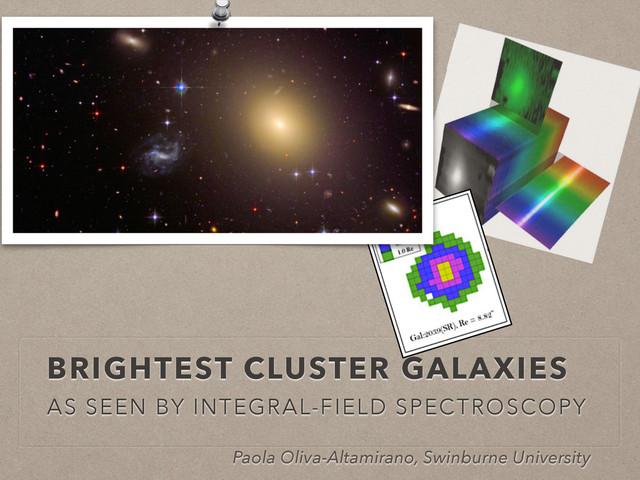 the AAT) Same projects larger samples (Sarah Brough with SAMI) Does the angular momentum of the BCG correlate with the Angular momentum of its host cluster? (P. Oliva-Altamirano) What is the star formation history of these galaxies? When do they quench?(P. Oliva-Altamirano)