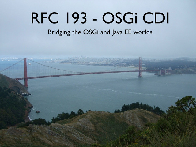 The CDI-OSGi specification (RFC-193) introduces a way to use CDI in OSGi. This brings the ease-of-use of CDI to OSGi, and more importantly, brings the OSGi and Java EE worlds closer together. It allows seamless integration between standard CDI code and the OSGi service model. Other features include sending and observing EventAdmin events using CDI events. In this presentation you will get an overview of the possibilities of this new specification, including some in-depth discussion of difficulties in integrating the OSGi service lifecycle with CDI.