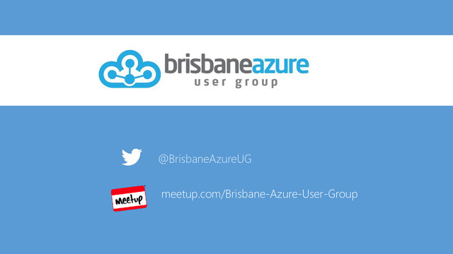 Brisbane Azure User Group https://twitter.com/BrisbaneAzureUG http://www.meetup.com/Brisbane-Azure-User-Group