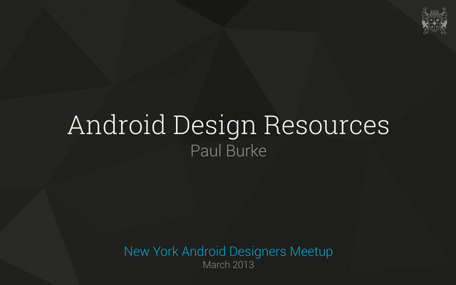 Lab http://touchlab.co Android Designer and Developer since 2009 http://paulburke.co Google+ Android Designers Community http://goo.gl/Bd4I8 Android Anti-Patterns http://gplus.to/androidantipatterns Profile http://gplus.to/paulburke New York Android Designers Meetup | March 2013
