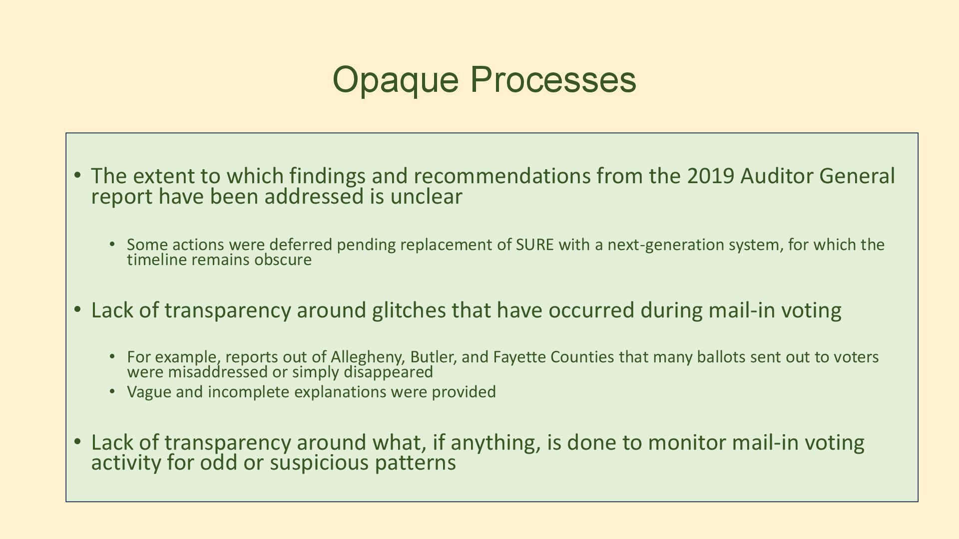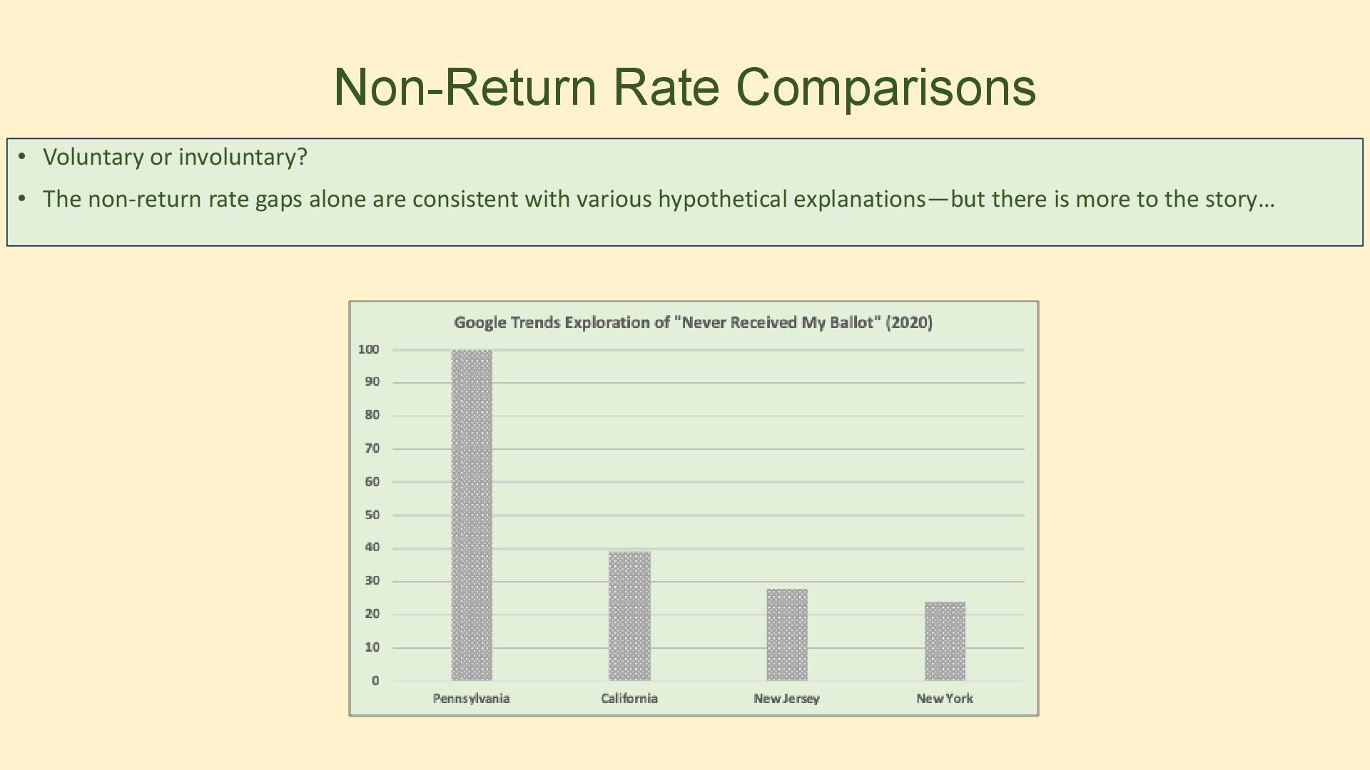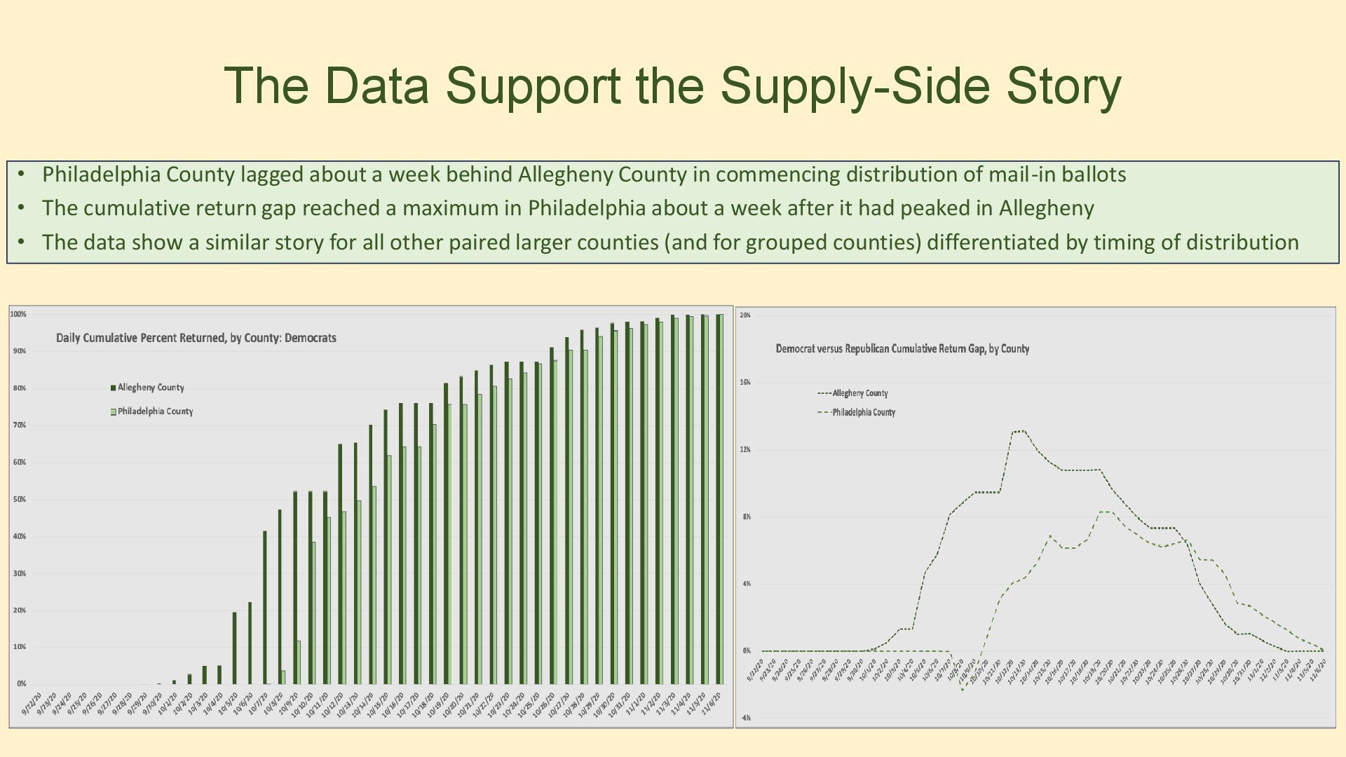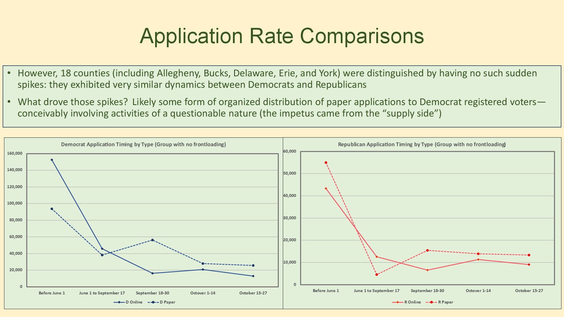exporter” or ”net importer” outliers • “Caravan to Stroudsburg”: Monroe had 1,425 provisional ballots deposited, of which 1,363 (96 percent) belonged to residents of other counties (exported provisional votes) • “Magical Myster Voters”: McKean had 211 provisional ballots deposited, all exported • Luzerne, Crawford, Montour: Places from which an unusually large number of residents had dispersed, voting provisionally from elsewhere in the state (imported provisional votes) • Two counties had an unusually large volume of deposited provisional ballots without being net exporters (Pike, Fulton) • “Trading Places”: Visiting vagabonds standing in for roaming residents • Clearly, it would be of value to know why — whether any irregularities were involved and, if so, how to prevent them from recurring