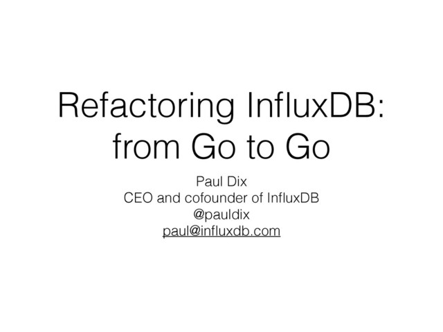 Refactoring InfluxDB: from Go to Go Paul Dix CEO and