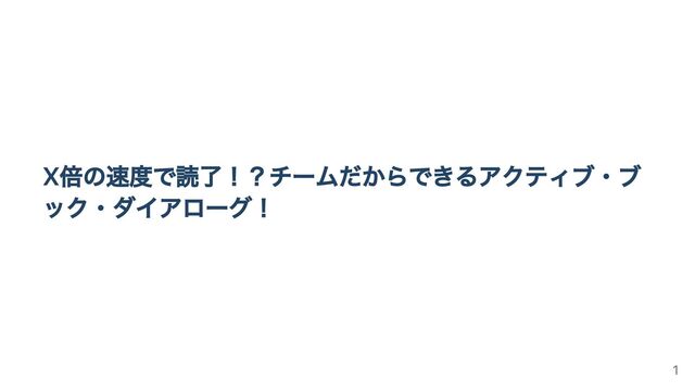 X倍の速度で読了!?チームだからできるアクティブ・ブック・ダイアローグ! / Read X times faster! Active Book Dialogue because we are a team!