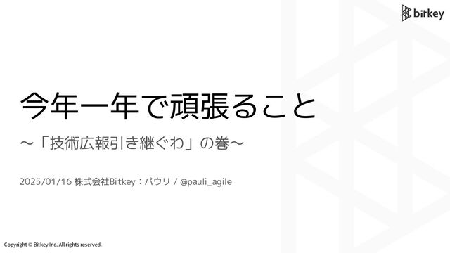 Copyright © Bitkey Inc. All rights reserved. 今年一年で頑張ること 〜「技術広報引き継ぐわ」の巻〜 2025/01/16