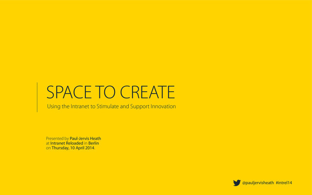 In this presentation, the evening keynote from Intranet Reloaded 2014, I talk about using intranets and 'the digital workplace' to stimulate creativity and support innovation.