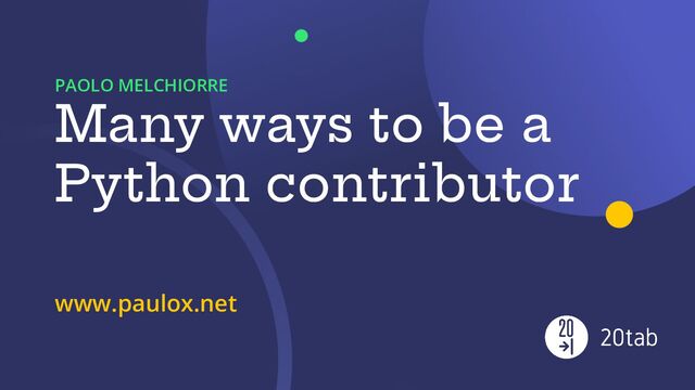 There are many ways to contribute to Python, and in this talk, newcomers to the community will discover new ways to get involved in the Python community, and community members will get ideas for getting new people involved.