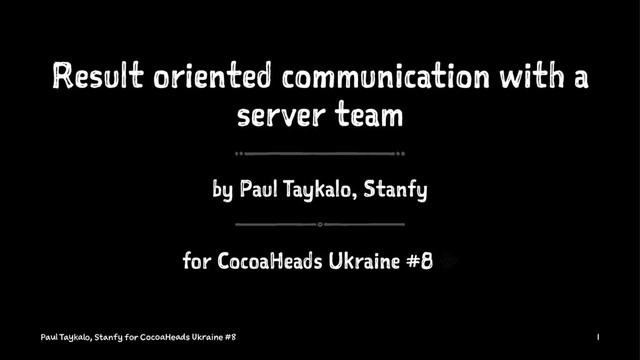 doesn't know about your previous experience 4 People doesn't know anything iOS at all 4 Be ready to fall back to the "basics" Paul Taykalo, Stanfy for CocoaHeads Ukraine #8 24