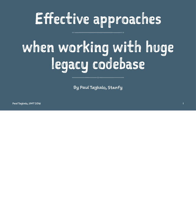 project size So here, depending on the side of the project, if project is small, you would probably wont' receive any time saves, just beacuase o fproject size. So technically test setup and runs will take you way more precious time to do. Paul Taykalo, UMT 2016 36