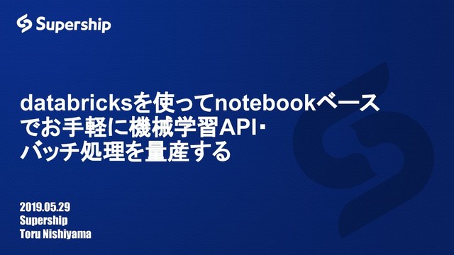 databricksを使ってnotebookベース でお手軽に機械学習API・ バッチ処理を量産する 2019.05.29 Supership Toru Nishiyama