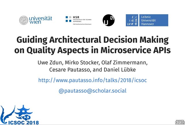 ICSOC2018 Paper Presentation by Uwe Zdun, Mirko Stocker, Olaf Zimmermann, Cesare Pautasso, and Daniel Lübke